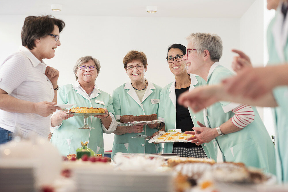 Der Kuchenfrühling ist da! Mit einem großen Kuchen- und Tortenbuffet lockten die Grünen Damen und Herren im Krankenhaus Bethanien dieser Tage viele Besucherinnen und Besucher zum diesjährigen Frühlingscafé in die Patientencafeteria der Klinik. Dort boten die ehrenamtlich tätigen Damen und Herren in den mintgrünen Kitteln eine große Vielfalt selbstgebackener Kuchen- und Tortenkreationen an - alles gegen eine kleine Spende für den guten Zweck.
