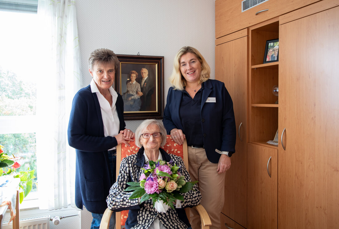 Allen Grund zum Feiern hatte am 03.10.2023 Elfriede Eurich, seit vier Jahren Bewohnerin des Seniorenstifts Bethanien in Moers. Die gebürtige Wuppertalerin, die seit 1945 in Moers lebt, wurde 101 Jahre alt.