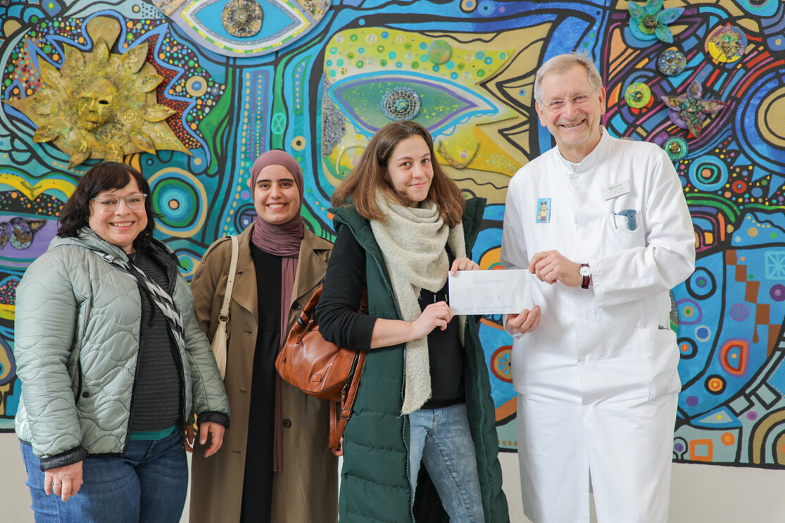 Einen Spendenbetrag in Höhe von 400 Euro überreichten Gjyljeta Macani von der Mobilen Jugendarbeit Kamp-Lintfort und Therese Pieczyk sowie Lea Pasch von der Kleinen Offenen Tür Gestfeld (K. O. T.) der Katholischen Kirchengemeinde St. Josef Kamp-Lintfort an den Chefarzt der Klinik für Kinder- & Jugendmedizin Bethanien Dr. Michael Wallot.