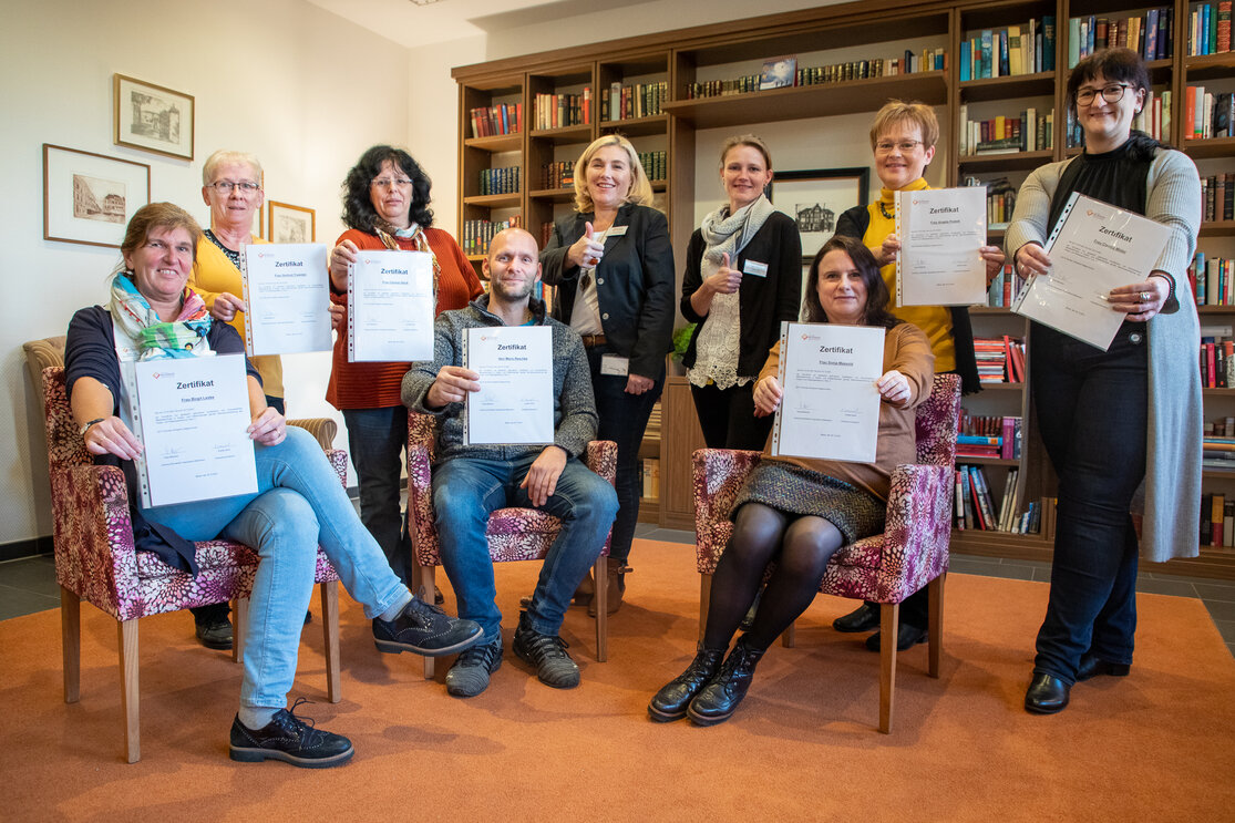 Insgesamt neun Teilnehmer:innen dieses Kurses erhielten im November nach Absolvierung des neunmonatigen Grundkurses ihre ersten Zertifikate. Für sie geht es jetzt in den Aufbaukurs, der im Januar 2022 endet und mit einem weiteren Zertifikat abgeschlossen wird.