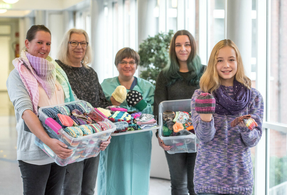 Unterstützt wurde Jenna Zakrzewski von ihrer Mutter Veronika und ihrer Tochter Sheyla. Auch die Freundinnen Heike Schmidt sowie Bärbel und Lena Eickholt haben tatkräftig mitgeholfen, die farbenfrohen Mützchen für die Kleinsten der Kleinen anzufertigen. Hunderte von Stunden haben die Helferinnen das gesamte Jahr über mit dem Stricken der Mützen verbracht. „Selbst an den heißesten Tagen des vergangen Sommers haben wir Mützchen gestrickt, damit die Frühchen es schön warm haben“, so Zakrzewski.