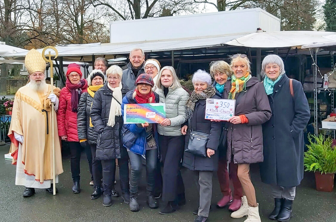 Seit sieben Jahren sammelt Blumenhändlerin Carola Wolter an ihrem Blumenstand auf den Wochenmärkten in Meerbeck und Moers Spenden für die im Bethanien tätigen Klinikclowns vom Verein Clownsvisite. In diesem Jahr kamen so 2.437,50 Euro zusammen. Doch das Engagement von Carola Wolter ging 2023 noch einen Schritt weiter. Bei dem wöchentlich stattfindenden „Sonntagscafé“ mit Ehrenamtlichen des Café Lyzeum im Begegnungs- und Beratungszentrum (BBZ) „Volksschule“ des SCI – Moers unterhielt man sich über die Spende für die Klinikclowns des Krankenhauses Bethanien. Die Ehrenamtlichen des BBZ, die sich für ältere Menschen einsetzen und Senior:innenarbeit leisten, entschieden sich, weitere 350 Euro für die Klinikclowns zu spenden. Blumenhändlerin Carola Wolter und Barbara Folkerts, die die ehrenamtliche Senior:innenenarbeit koordiniert, erzählen: „In Zeiten wie diesen muss man zusammenhalten und Gutes tun, das liegt uns am Herzen.“ Barbara Folkerts fügt hinzu: „Kinder sind unsere Zukunft. Gerade, wenn Kinder krank sind, sollten diese einen Grund zur Freude haben.“