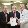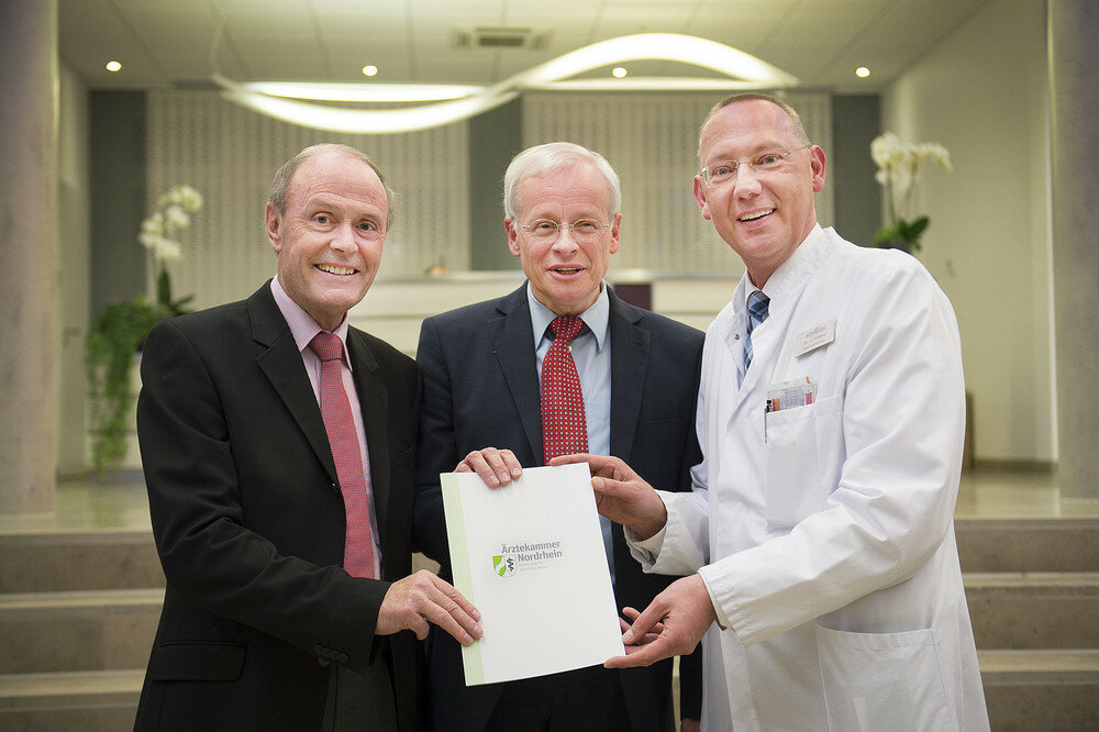 Pressefoto: Start für eine zukunftsweisende Kooperation: Bernd Zimmer (m.), Vizepräsident der Ärztekammer überreichte die Kooperationsurkunde an Karl-Heinz Tenter (li.) von der Stiftung Krankenhaus Bethanien und an Dr. Thomas Voshaar (re.), den Ärztlichen Direktor des Krankenhauses