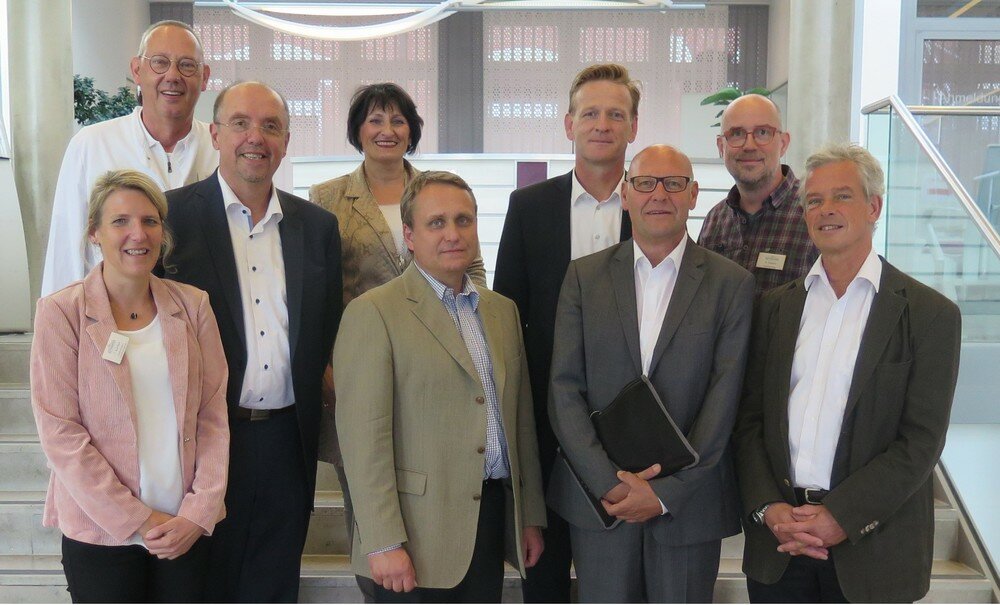 Pressefoto: Erfolgreiche KTQ-Zertifizierung (v. l. n. r.): Qualitätsmanagerin Tanja Koschare, Ärztlicher Direktor Dr. Thomas Voshaar, ökonomischer Visitor Günter Leimberger, Pflegedirektorin Angelika Linkner, ärztlicher Visitor Frank Iwanowski, Vorstand und Krankenhausdirektor Dr. Ralf Engels, pflegerischer Visitor Uwe Tegtmeier, Qualitätsmanager Ralf Drückes und Visitationsbegleiter Uwe Riegelmann.