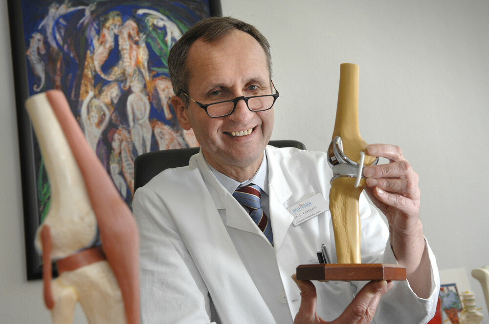 Pressefoto: Herr der Knochen: Bethanien-Chefarzt Dr. Christoph Chylarecki rettete jetzt in der Unfallchirurgie des Moerser Krankenhauses binnen eines Monats gleich fünf Patientinnen und Patienten mit Genickbruch das Leben.