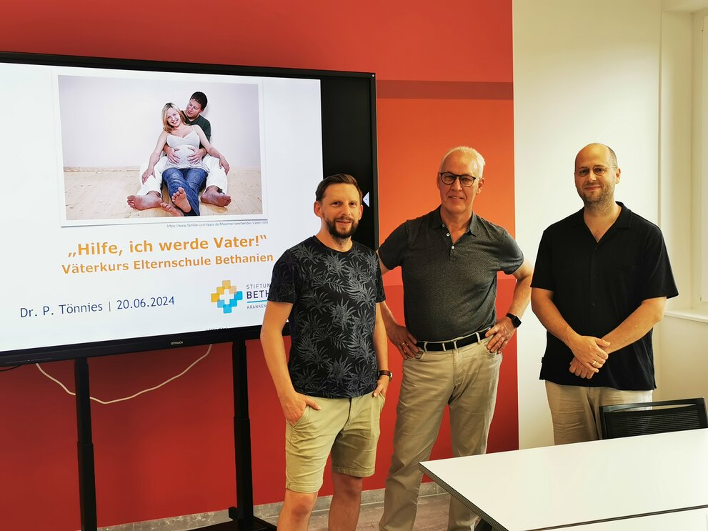 Tipps von einem fünffachen Vater, der gleichzeitig Chefarzt der Klinik für Gynäkologie, Geburtshilfe, Gynäkologische Onkologie & Senologie am Krankenhaus Bethanien Moers ist, gab es für werdende Väter Ende August im Rahmen des Kurses „Hilfe, ich werde Vater!“. In kleiner Runde beantwortete der Mediziner Fragen rund um die Geburt, die erste gemeinsame Zeit und die passende Unterstützung für die werdende Mutter. Der Experte wusste genau, wie sich werdende Väter während der Schwangerschaft einbringen können und welche Fragen die Männer in ihrer neuen Rolle beschäftigen. Der kostenfreie Vortrag mit anschließender Fragerunde findet regelmäßig statt. Die Anmeldung dafür ist in der Elternschule Bethanien telefonisch unter +49 (0) 2841200-2670 möglich.