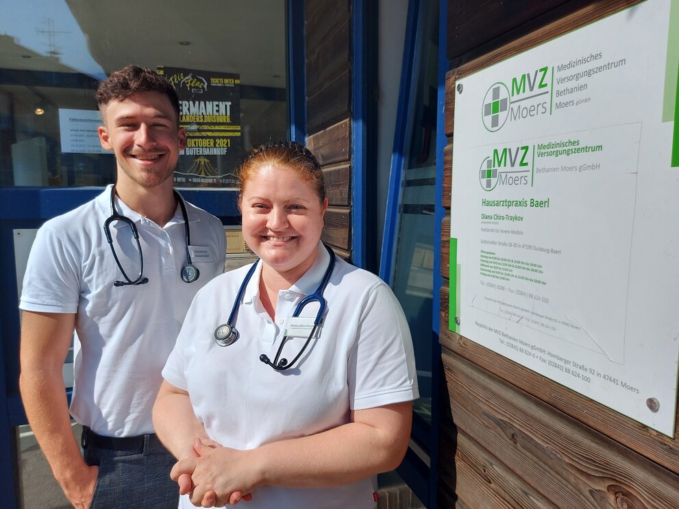 PRESSEFOTO: Die hausärztliche Praxis in Duisburg-Baerl ist Lehrpraxis der Universität Witten/Herdecke. Medizinstudent Engincan Koc absolvierte eines seiner Pflichtpraktika bei Diana Chira-Traykov in der Zweigstelle des MVZ Bethanien.