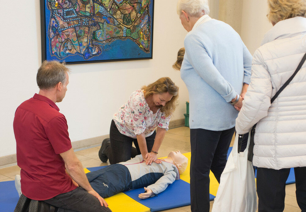 Pressefoto: Mitmachen erwünscht: Beim Herztag im Bethanien können die Gäste unter Anleitung von Fachkrankenpflegern die Herz-Lungen-Wiederbelebung an einer Puppe ausprobieren.