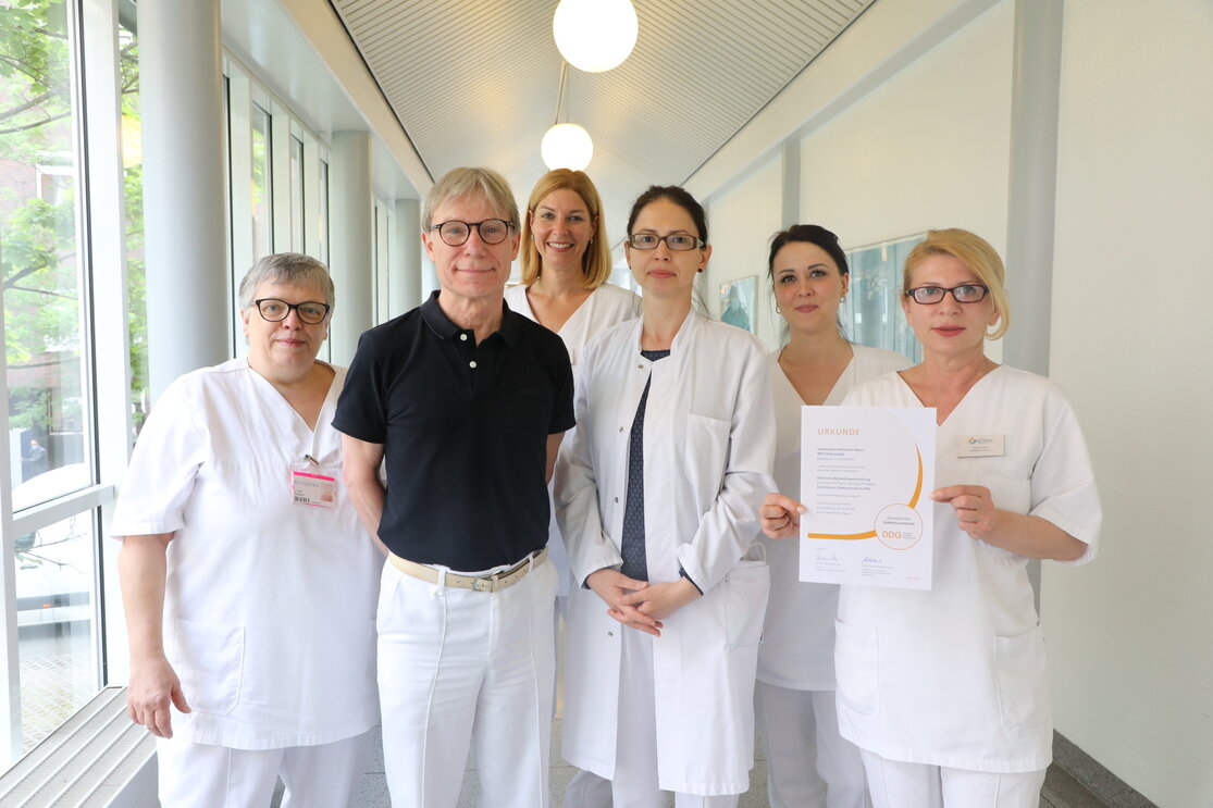 Mit über sechs Millionen betroffenen Menschen gilt Diabetes als Volkskrankheit Nummer eins in Deutschland. Häufig benötigen Patient:innen eine fachübergreifende Behandlung in spezialisierten Zentren, Kliniken oder Praxen, die eine qualitativ hochwertige Versorgung gewährleisten und hoch definierte Anforderungen erfüllen. Diese Einrichtungen zertifiziert die Deutsche Diabetes Gesellschaft (DDG) als „Zertifizierte Diabeteszentren DDG“. Eine solches Zentrum ist und bleibt das Krankenhaus Bethanien Moers. Dies bescheinigte die DDG dem Moerser Krankenhaus nach einer alle drei Jahre stattfindenden Qualitätsprüfung. „Die Zertifizierung der DDG zeigt uns und unseren Patientinnen und Patienten, dass unsere Behandlung in allen Bereichen – Therapie, Beratung und Schulung – den heutigen wissenschaftlichen Erkenntnissen entsprechen. Das bringt unseren Patientinnen und Patienten Sicherheit und ist für uns und unser Team zugleich eine Anerkennung für die tägliche Arbeit“, erklärt Dr. Ralph-Dietrich Rackwitz, Leiter der Diabetologie im Krankenhaus Bethanien.