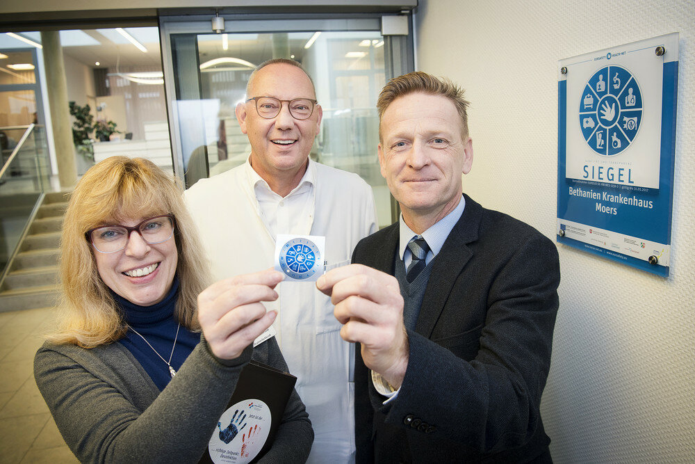 Hygiene-TÜV bestanden: Der Fachdienst Gesundheitswesen des Kreises Wesel verlieh jetzt den Kliniken des Kreises das Euregio-Qualitätssiegel – so auch dem Krankenhaus Bethanien.