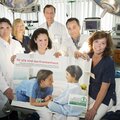 Pressefoto: Die drei Kliniken vor Ort nahmen an der bundesweiten Kampagne "Wir alle sind das Krankenhaus" teil: Oberarzt Dr. Thorsten Diana (1.v.l.), Klinik für Gefäßchirurgie, mit Krankenschwester und Stationsleitung Katharina Hagemann (2.v.l.) aus dem St. Bernhard-Hospital Kamp-Lintfort, Oberarzt Dr. Gündüz Selcan (2.v.r.) mit Kinderkrankenschwester und stellvertretender Stationsleitung Andrea Otten (3.v.l.) aus der Kinderklinik Bethanien in Moers sowie Chefarzt Dr. Rainer Körte (3.v.r.) mit Krankenschwester Antje Lohbeck (1.v.r.), zentrale Notaufnahme des St. Josef Krankenhaus Moers.