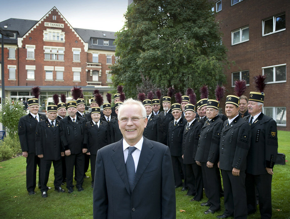 Pressefoto: Chefarzt Prof. Dr. Dieter Opherk bei seiner offiziellen Verabschiedung am Samstag, 29. August 2009 mit dem Knappenchor Friedrich-Heinrich 1912, der auf Wunsch Opherks beim Festakt im Krankenhaus für den musikalischen Part sorgte.