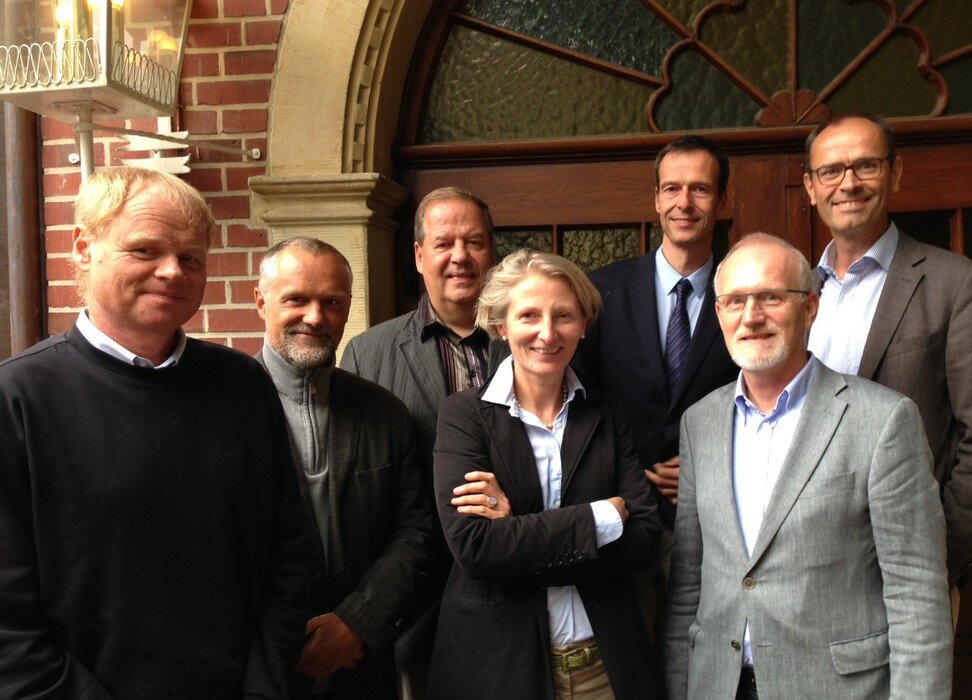 Pressefoto: Chefärzte der Kinderkliniken am Niederrhein und im westlichen Münsterland treffen sich seit 25 Jahren zum fachlichen Austausch. Beim Jubiläum in Coesfeld waren unter anderem dabei (v.l.n.r.): Prof. Dr. Tim Niehues von den Helios-Kliniken Krefeld, Dr. Jochen Rübo vom St.-Antonius-Hospital Kleve, Dr. Klaus Winter vom St. Agnes-Hospital Bocholt, Prof. Dr. Monika Gappa vom Marien-Hospital Wesel, Dr. Hans-Georg Hoffmann vom Mathias-Hospital Rheine, Dr. Georg Kluitmann vom St. Vinzenz-Hospital Dinslaken und Dr. Hubert Gerleve von den Christophorus-Kliniken Coesfeld. - Nicht im Bild ist Dr. Michael Wallot, Chefarzt der Kinderklinik Bethanien in Moers.