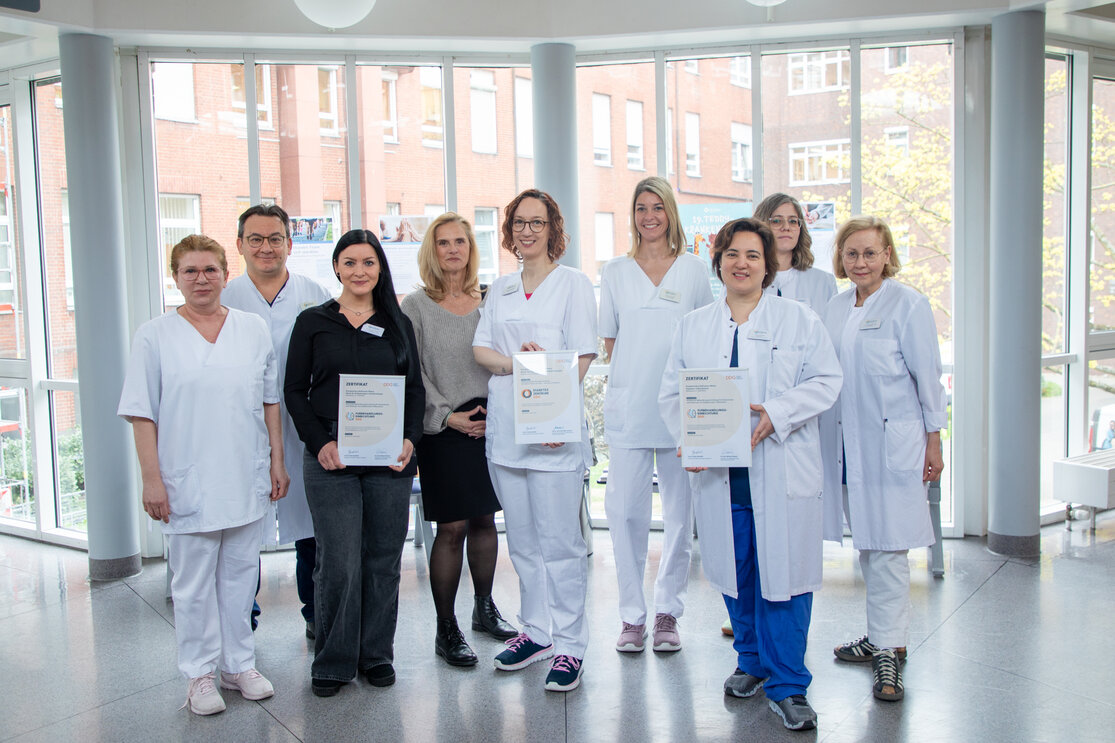 Diabetes mellitus ist eine der Volkskrankheiten in Deutschland: Rund neun Millionen Menschen sind betroffen. Weil die Krankheit sehr komplex ist, braucht jede:r Patient:in eine speziell auf die jeweilige Stoffwechsellage und begleitende Faktoren optimal zugeschnittene Behandlung. Diabetes verursacht häufig zunächst keine Beschwerden, führt unbehandelt jedoch zu ernsten Folgeerkrankungen. Unter anderem zieht die Erkrankung die Blutgefäße in Mitleidenschaft, sodas Patient:innen ein höheres Risiko für das sogenannte diabetische Fußsyndrom haben. Eine Einrichtung, die Patient:innen mit Typ-1-Diabetes bzw. Typ-2-Diabetes sowie diabetischem Fußsyndrom qualifiziert und umfassend betreut, ist die Klinik für Diabetologie & Endokrinologie des Krankenhauses Bethanien Moers. Sie konnte sich nun gleich mehrfach freuen – mit dem erneuten Erhalt der Zertifikate „Diabeteszentrum DDG“ und „stationäre sowie ambulante Fußbehandlungseinrichtung DDG“ der Deutschen Diabetes Gesellschaft (DDG).