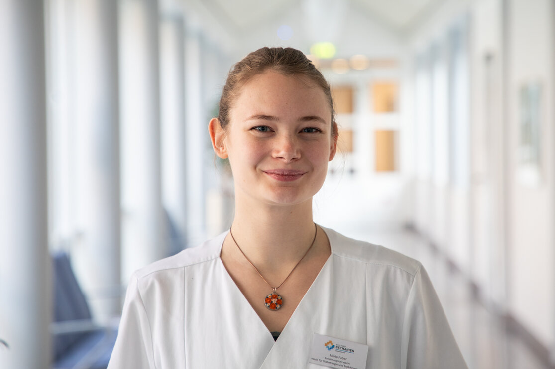 Rund ein Viertel der Patient:innen in deutschen Krankenhäusern ist nachgewiesenermaßen mangelernährt. Damit einher gehen steigende Liegezeiten im Krankenhaus, eine zunehmende Komplikationsrate, ein steigendes Sterberisiko, eine gestörte Wundheilung und vor allem eine verminderte Lebensqualität der Betroffenen. Seit Februar 2025 ist die 26-jährige Merle Faber als Ernährungsberaterin im Krankenhaus Bethanien Moers tätig. Hier etablierte sie unter anderem ein neues Screening auf Mangelernährung, das Nutritional Risk Screening (NRS 2002) nach den Leitlinien der Europäischen Gesellschaft für Klinische Ernährung und Stoffwechsel, mit dem bereits bei der stationären Aufnahme eine mögliche Mangelernährung festgestellt und so noch schneller behandelt werden kann.