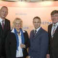Pressefoto: Die Erste Stellvertretende Bürgermeisterin Erika Scholten (2.v.l.) und der Moerser Bundestagsabgeordnete Siegmund Ehrmann (re.) gratulierten Dr. Thomas Voshaar (li.) als Chefarzt der Lungenklinik und Leiter des Lungenzentrums sowie Oberarzt Dr. Kato Kambartel (2.v.r.), Koordinator im Lungenzentrum.