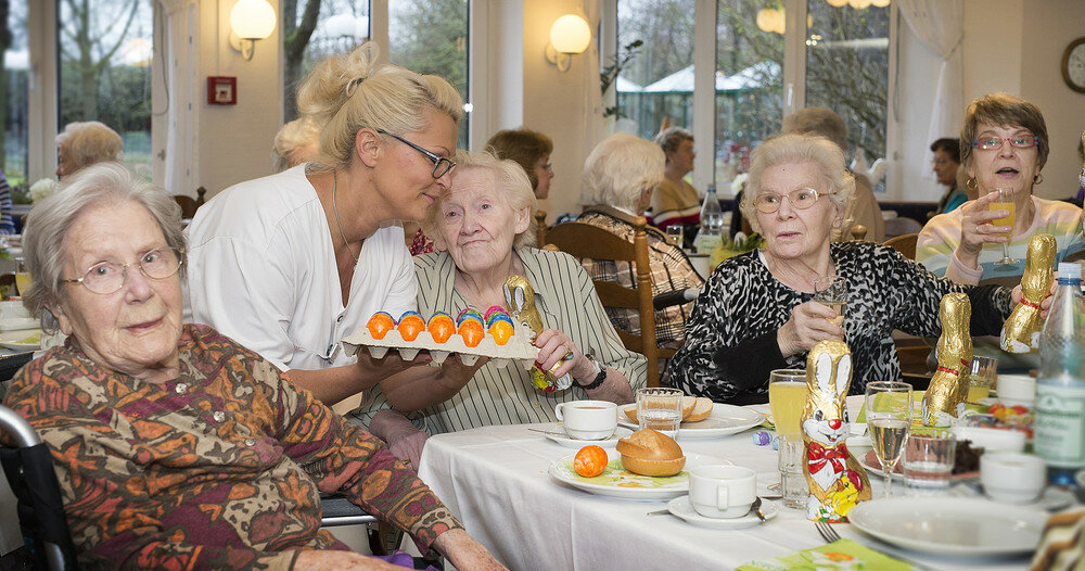 Nach der kurzen Begrüßungsansprache Herings sorgte das Team der Hauswirtschaft um Marlies Schürmann mit Sekt und Selters für einen sprichwörtlich prickelnden Start in den Ostermorgen. Anschließend servierten die Hauswirtschafterinnen Süßes und Deftiges aus der Küche. Für Gesang und gute Laune sorgte schließlich Horst Barthel an der Gitarre. Mit Liedern wie "Hoch auf dem gelben Wagen" hatte der Musiker die versammelten Frühstücksgäste schnell in muntere Stimmung versetzt. "Jetzt kann der Frühling aber auch endlich kommen", freute sich eine Bewohnerin.