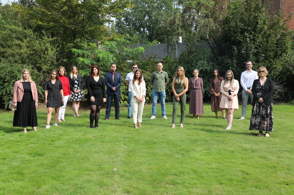 PRESSEFOTO: Die Absolvent:innen des Kurses Oktober (18/21) der Pflegefachschule Bethanien mit Schulleiterin Birsel Kasilmis (3. v. l.) und Kursleiterin Anja Karpacz (re.).