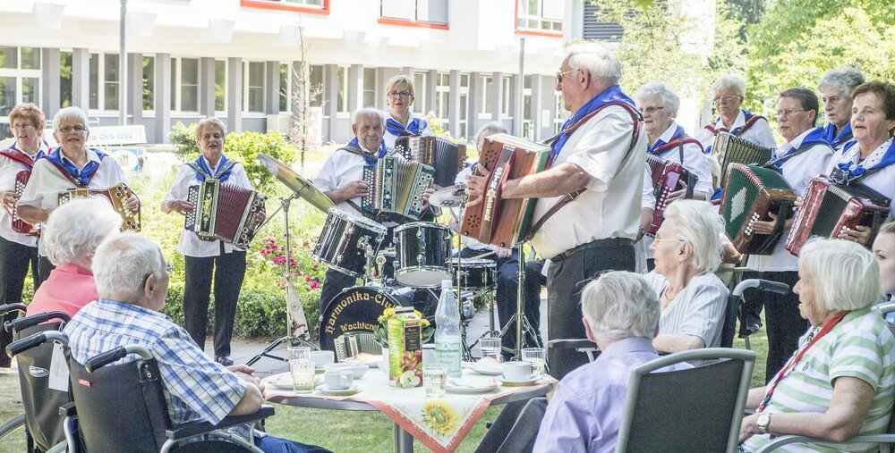 Pressefoto: Beim Sommerfest im Seniorenstift Bethanien sorgte der fast zwanzigköpfige Harmonika-Club Wachtendonk für gute Unterhaltung.