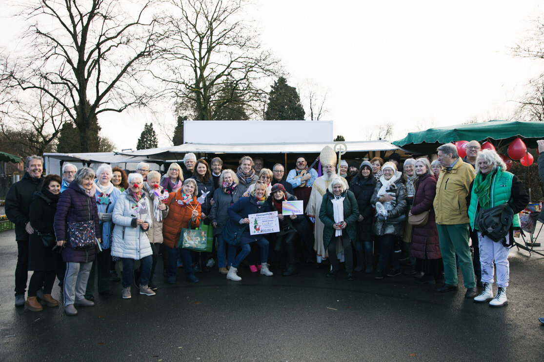 Zur Spendenübergabe auf dem Meerbecker Wochenmarkt am vergangenen Samstag, die gleichzeitig eine kleine Abschiedsfeier für Carola Wolter war, kamen neben der Moeser Blumenhändlerin und Barbara Folkerts sowie weiteren Ehrenamtlichen des Café Lyzeum, Dr. Gündüz Selcan, Leitender Oberarzt der Klinik für Kinder- & Jugendmedizin, der Nikolaus alias Klaus-Dieter Wiederhold, der Bürgermeister der Stadt Moers Christoph Fleischhauer, die 1. Stellvertretende Bürgermeisterin von Moers Claudia van Dyck, Klinikclown Slim, der das Geschehen musikalisch auf seiner Ukulele begleitete, und viele Weggefährt:innen und Spender:innen von Carola Wolter. „Ich möchte mich an dieser Stelle ganz herzlich bei allen Spenderinnen und Spendern bedanken, denen es wichtig war, meine Aktion über all die Jahre zu unterstützen“, erklärt die Blumenhändlerin gerührt.