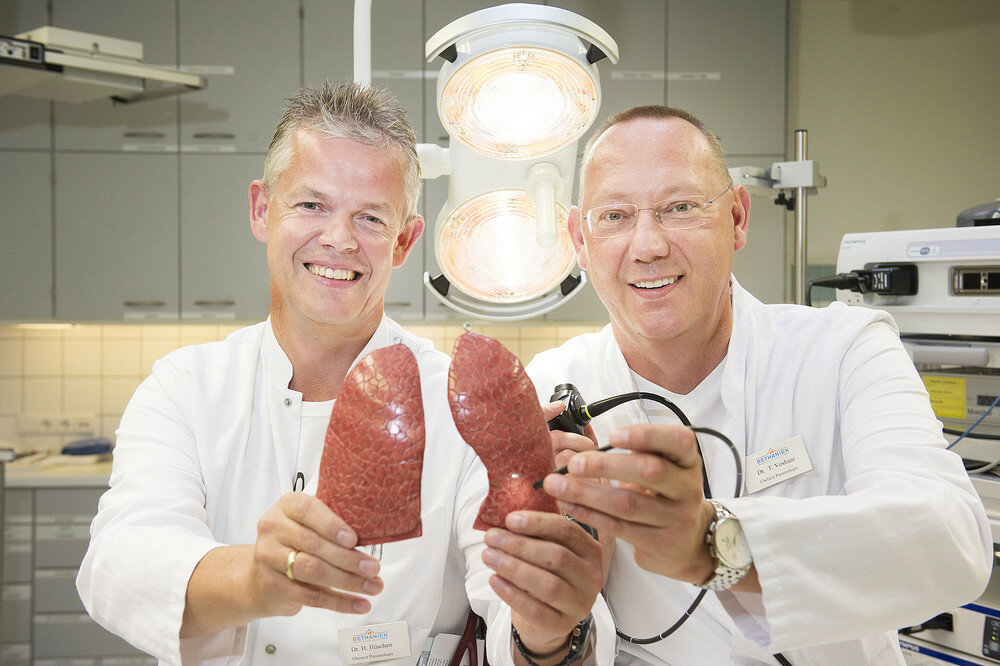 Pressefoto: Die Lunge liegt ihnen am Herzen: Oberarzt Dr. Hartmut Hüschen (li.) und Chefarzt Dr. Thomas Voshaar von der Lungenklinik Bethanien haben die neuen Verfahren in Moers eingeführt.