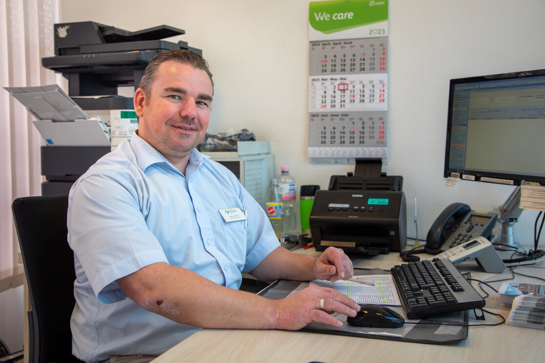 Wer zur geplanten stationären Aufnahme ins Krankenhaus Bethanien kommt, muss erst an Ronny Strah vorbei: Zwischen 20 und 30 Patient:innen am Tag schleust der langjährige Bethanier, der in einem der zwei Büros gleich neben dem Krankenhausempfang arbeitet, durch das obligatorische Aufnahmeverfahren – stets freundlich, respektvoll und mit viel Geduld bei der Beantwortung sämtlicher Fragen. Weitaus weniger hilfsbereit ist der leidenschaftliche Fußballer bei seinem Hobby, wenn gegnerische Stürmer auf Torejagd gehen. Denn als Torwart der „Big Boys“ des SC Buschhausen 1912 soll so schnell keiner an ihm vorbeikommen. Seit gut einem Jahr spielt Ronny Strah im Team des Oberhausener Sportvereins, das alles andere als eine gewöhnliche Fußballmannschaft ist.