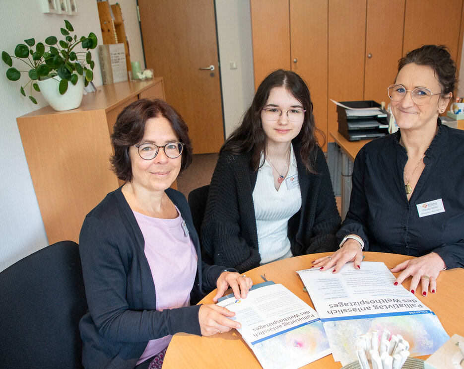 Und so tauchte Lena Egger für eine Tage in die Tätigkeiten des Teams des Ambulanten Hospizdienstes ein: „Ich konnte Frau Möller und Frau Kunze als Hospizkoordinatorin bei ihrer Arbeit über die Schulter schauen. Ich war zum Beispiel bei Sitzungen dabei und habe auch ein Gespräch mit einem Patienten erlebt. An meinem letzten Tag kam irgendwann ein Anruf, dass eine Patientin eine Sterbebegleitung benötigt, da sie sich auf ihrem letzten Weg befand. Auch hier durfte ich dabei sein und habe mitbekommen, wie der Ambulanten Hospizdienst mit so einer Situation umgeht. Dieser Moment, der nicht unbedingt etwas Alltägliches für die meisten Menschen ist, war für mich irgendwie sehr beruhigend. Ich wusste die Patientin wird nicht allein sein und es wird jemand da sein, der bzw. die sie auf dem letzten Weg begleitet und nochmal ein paar beruhigende Worte mitgeben kann. Ob diese Person es wirklich noch aktiv mitbekommt, wissen wir natürlich nicht – aber es ist schön daran zu glauben und zu wissen, dass jemand da ist, falls man es braucht."
