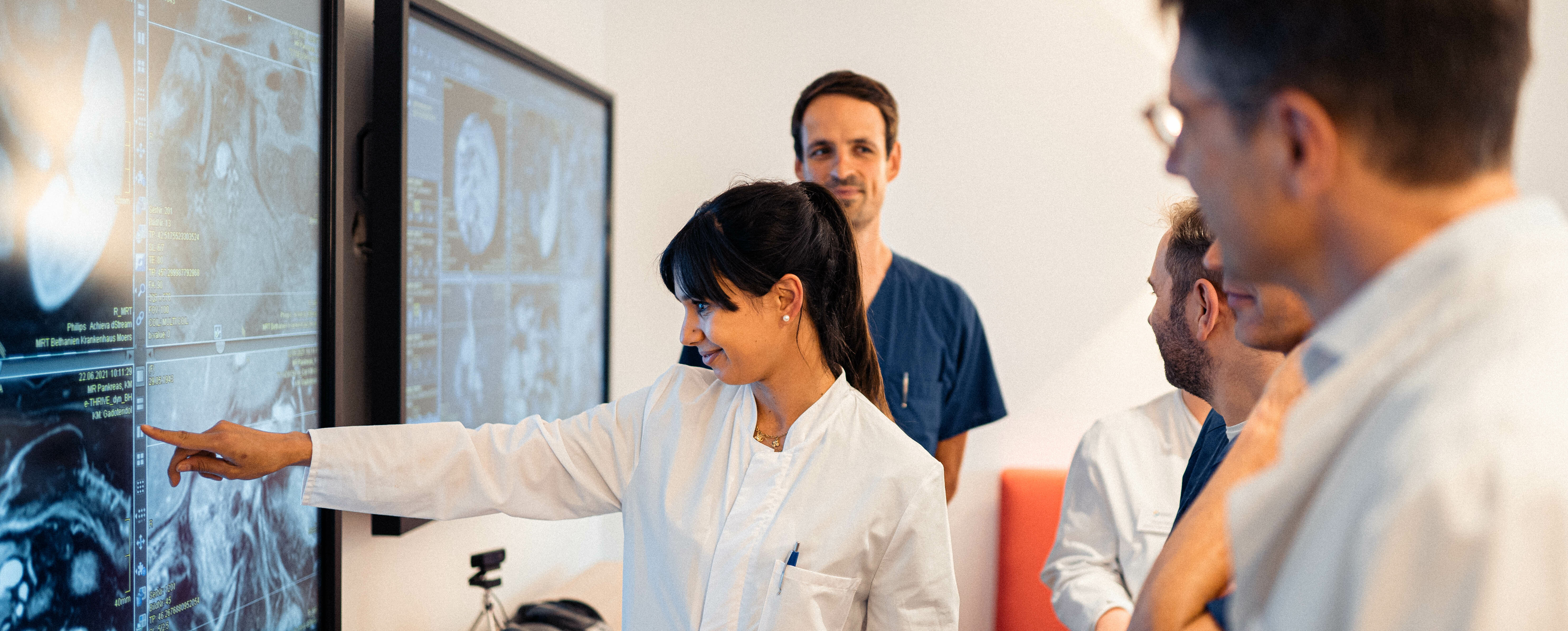 Die Radiologie & Nuklearmedizin sorgt dafür, dass sich die Ärzt:innen im wahrsten Sinne des Wortes ein Bild von den Erkrankungen oder Verletzungen ihrer Patient:innen machen können. So genannte bildgebende Verfahren sind somit die Hauptaufgaben der Radiologie und Nuklearmedizin.