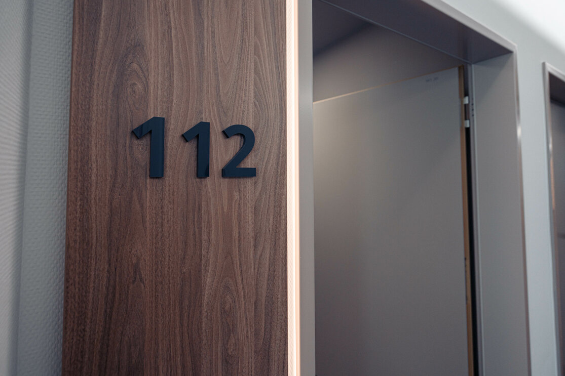 Sollte die Tür verschlossen sein, klingeln Sie bitte im Obergeschoss auf der Station G0.
