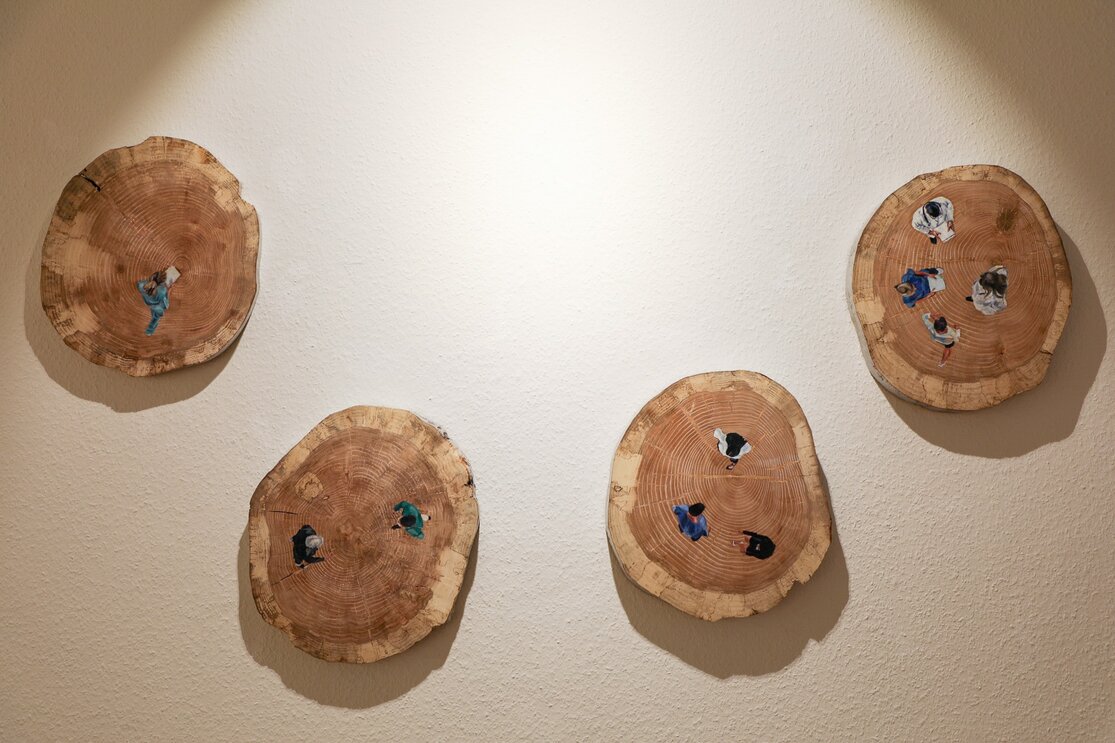 Diese Kunstwerke sind weit mehr als Dekoration. Sie spenden Trost und Kraft. Zusammenmit den Texten, den Sinnsprüchen, den Aphorismen sind sie Quelle individueller Emotionen und Gedanken, öffnen vielleicht ein Tor zu unserer Seele. Solche Momente sind ein unverzichtbarer Beitrag zur Genesung und zur Bewältigung der alltäglichen oft sehr anstrengenden Arbeit. Es ergänzen sich Wort und Bild. Der Baum, nun vielfältiger Sinnträger, wird so zu einem mehrdimensionalen komplexen Kunstwerk an verschiedensten Orten unter dem einem Dach der Stiftung Bethanien. Der Lebensbaum bleibt in seiner Form, seinen Ästen erkennbar – mal mehr, mal weniger, wie die Abbildungen des Kataloges verdeutlichen. Ausgehend von dem Hauptwerk, das aus dem Stamm gearbeitet wurde, verzweigt er sich dann in seinem neuen Wesen in alle Bereiche der Stiftung. So finden sich dann, ver teilt in der gesamten Stiftung Bethanien, die fast 30 Kunstwerke und die sinnstiftenden Texte. Es ist eine Vielfalt von Kunstwerken und eine Vielfalt an Texten, die für diesen Lebensbaum entstanden sind. Und es ist genau diese Vielfalt, die zum Ausdruck kommen soll. Sie entspricht der Vielfalt der Menschen, die sich jeden Tag in unserer Stiftung begegnen. In der Stiftung Bethanien sind Mitarbeiter:innen aus mehr als 50 Ländern aus aller Welt beschäftigt. Sie kommen, wie auch unsere Patient:innen, aus unterschiedlichsten Kulturen und sie bringen somit eine kulturelle Vielfalt in unser Haus, die wir persönlich als große Bereicherung erleben.